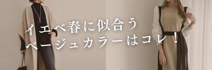 ベージュカラーの柔らかな色合いが、イエベ春の温かみのある肌色と相性抜群で、女性らしさを引き立てます。