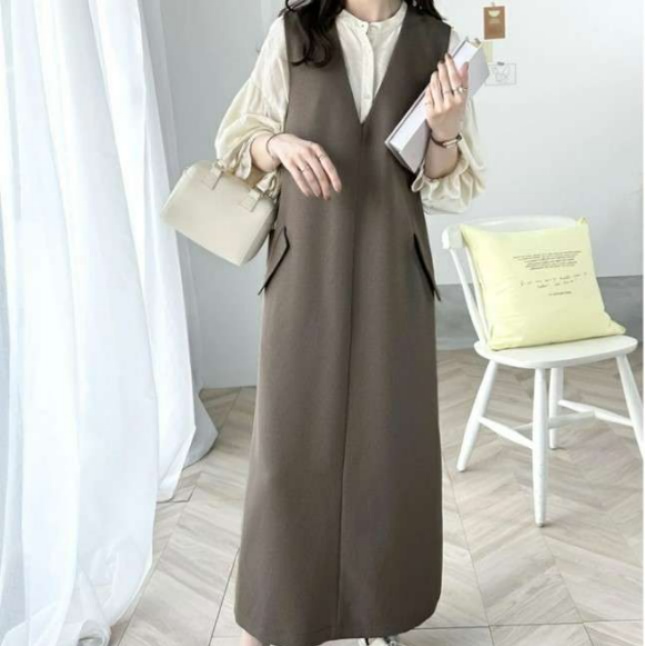ゆったりとしたシルエットが特徴のマキシ丈ワンピース。