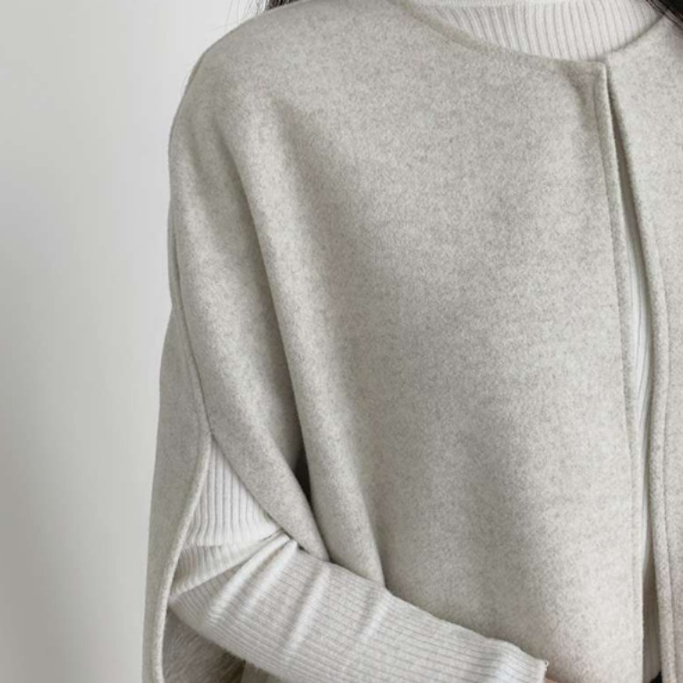 すっきりとしたノーカラーデザインで、シンプルながら優雅な印象を演出。袖口のスリットで腕の動きも自由自在。上品な着こなしを叶える一着。