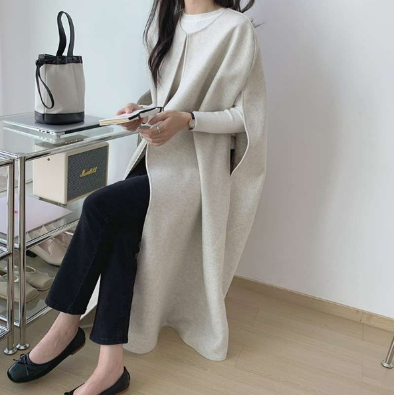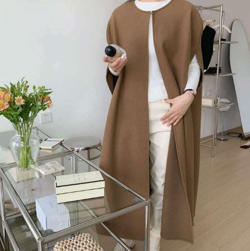 薄手のウール素材が作り出す優雅な落ち感で、品のある女性らしいシルエットを演出します。