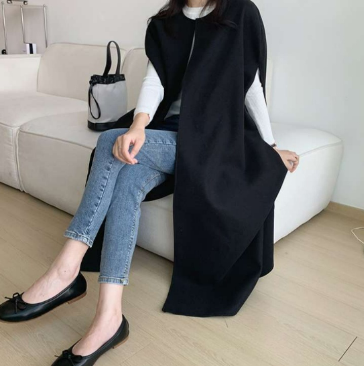 【商品詳細】 ・素材: ポリエステル ・襟:ノーカラード ・丈:ロング丈 ・袖:ベスト ・生地厚さ:通常 ・透け感:なし ・生地の弾力:微弾力、柔らかい