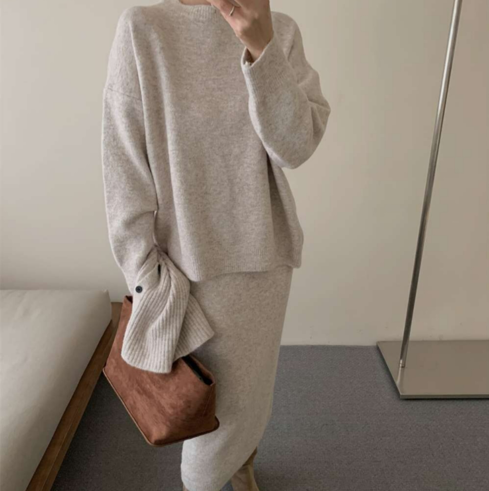 ゆったりとしたシルエットで暖かみのある着心地が特徴的なニットセットアップ♪