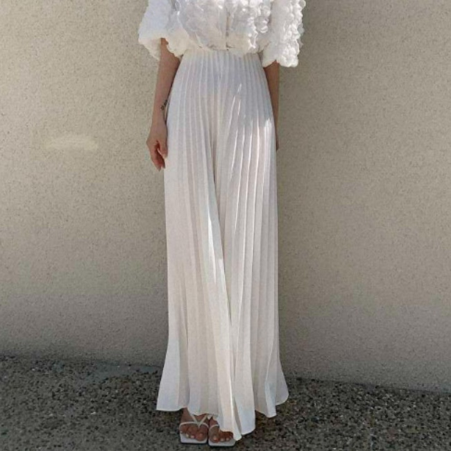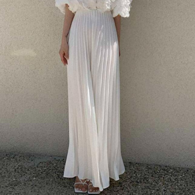 細かいプリーツが施されており、歩くたびに優雅な動きを演出する上質な仕立て