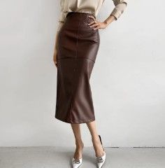 上質なレザー調素材を使用した、洗練されたタイトシルエットのスカートです。